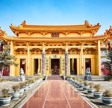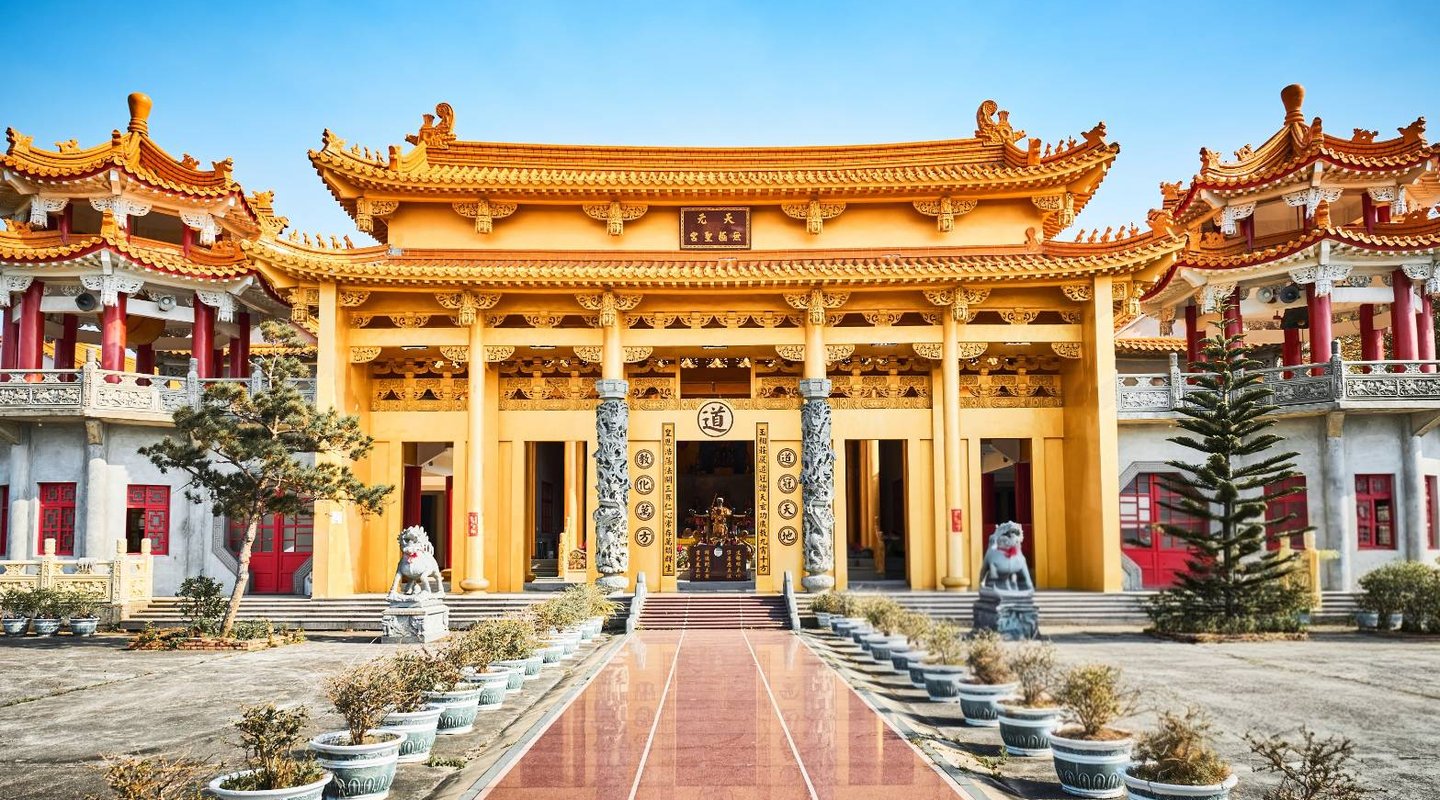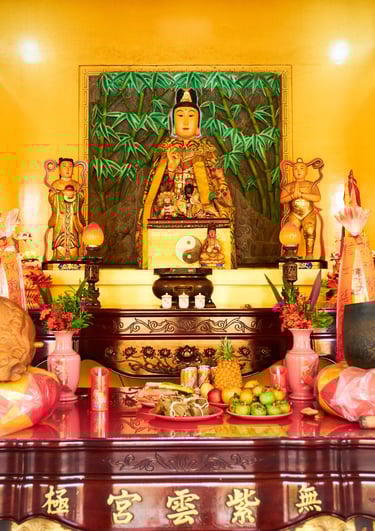 其後增建前殿 紫禁宮(奉玉皇上帝)與後殿 紫雲宮(奉觀音大士),形成五殿齊備的道教格局。外有八卦圍牆、內依五行布局,全宮占地約 3,600 坪,是當代少見的五行八卦道觀。