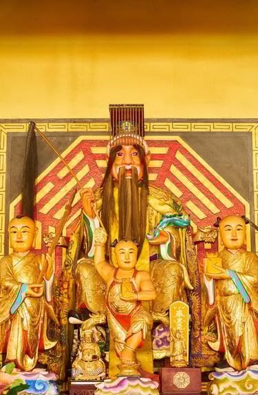 玉皇大帝,尊稱 昊天金闕無上至尊自然妙有彌羅至真玉皇大天尊,為道教統御三界、主宰天地萬靈的最高天帝,掌天庭萬政、四御諸神,是十方眾神所共尊的至上天尊。